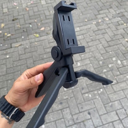 3️⃣ Trípode resistente, también funciona como grip de mano